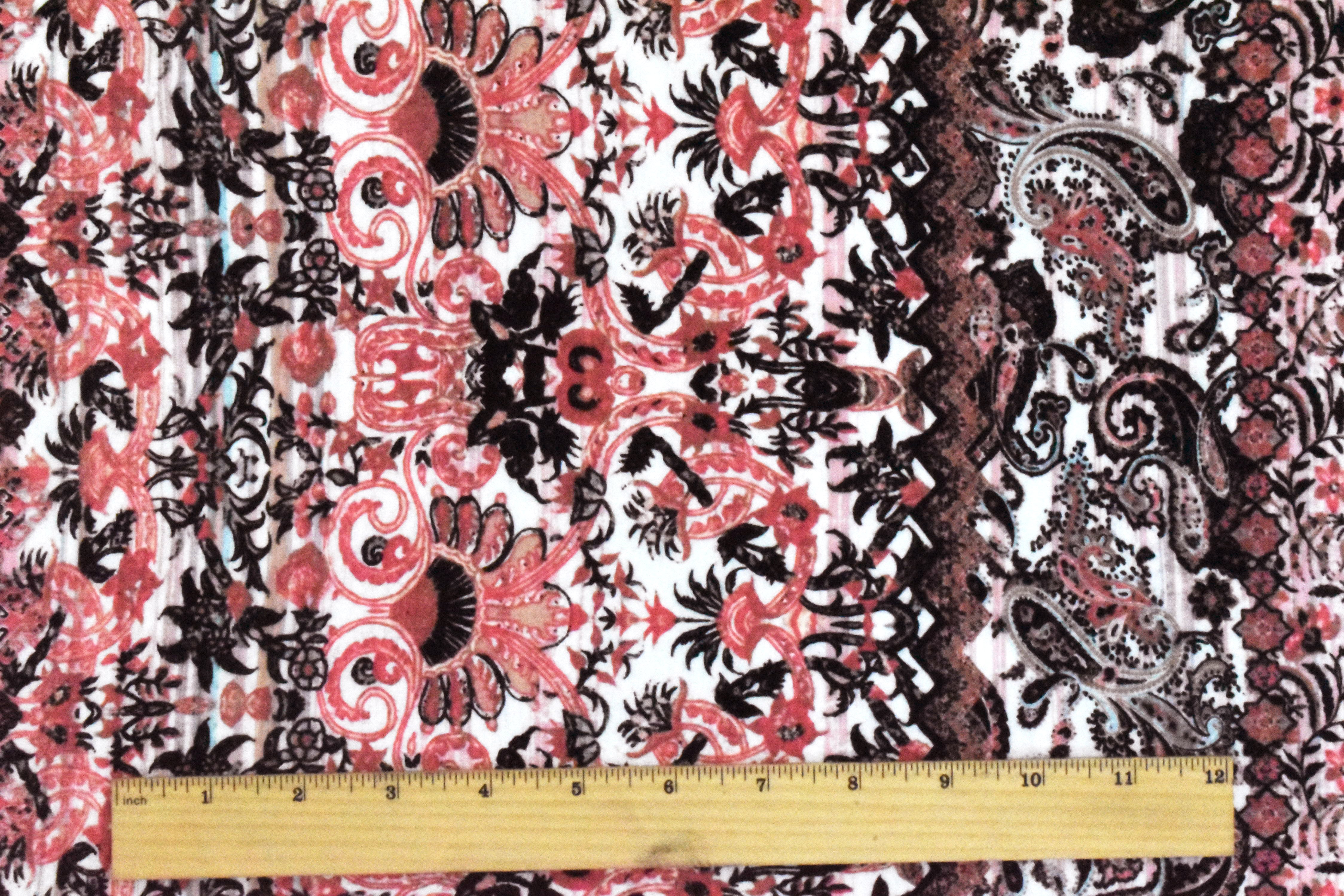 -Low luster baroque and paisley stripe printed pattern stretch jersey knit fabric