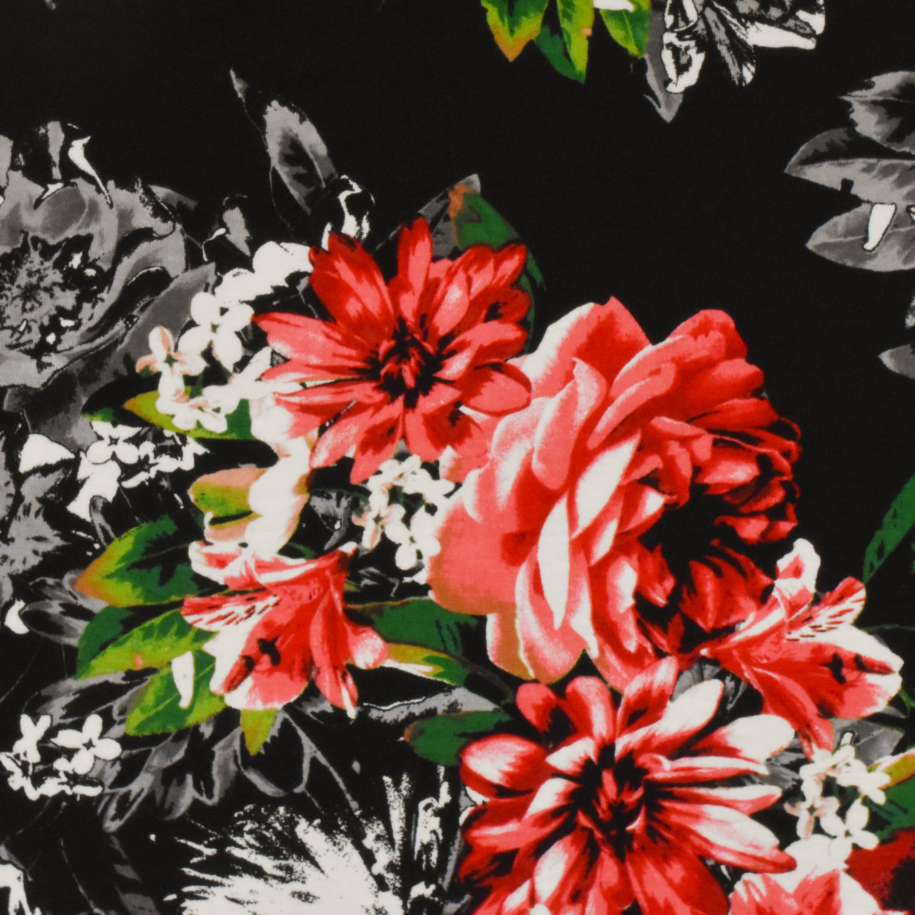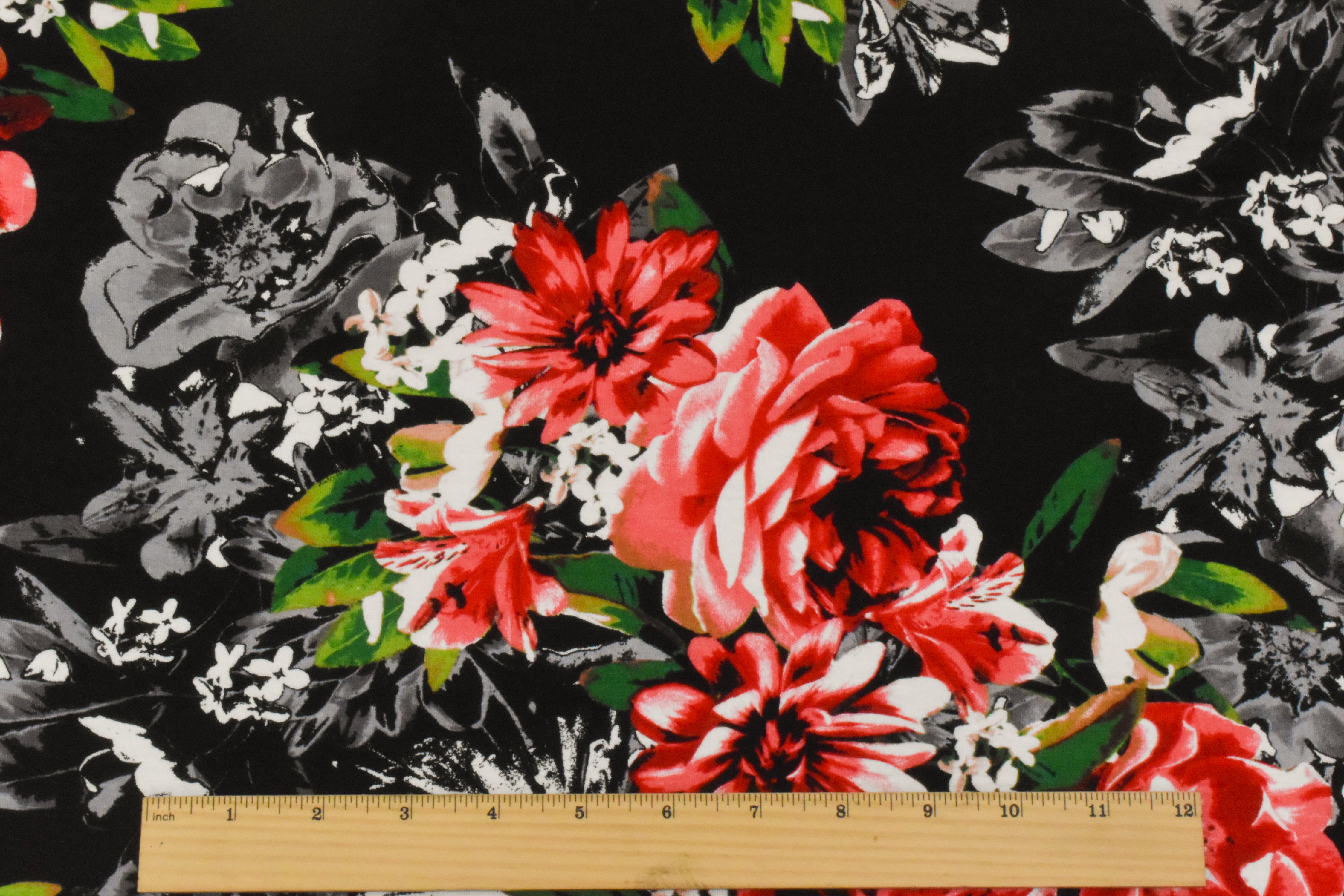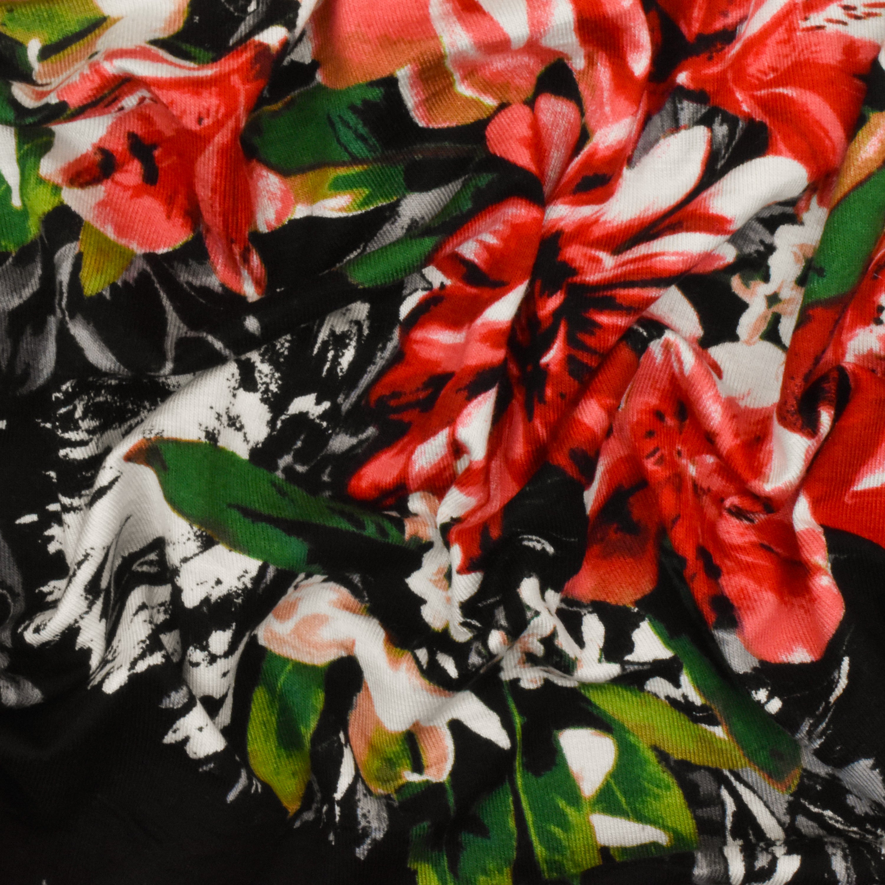 Pure Red-Black-Multi Floral Printed Stretch Rayon Jersey Knit Fabric