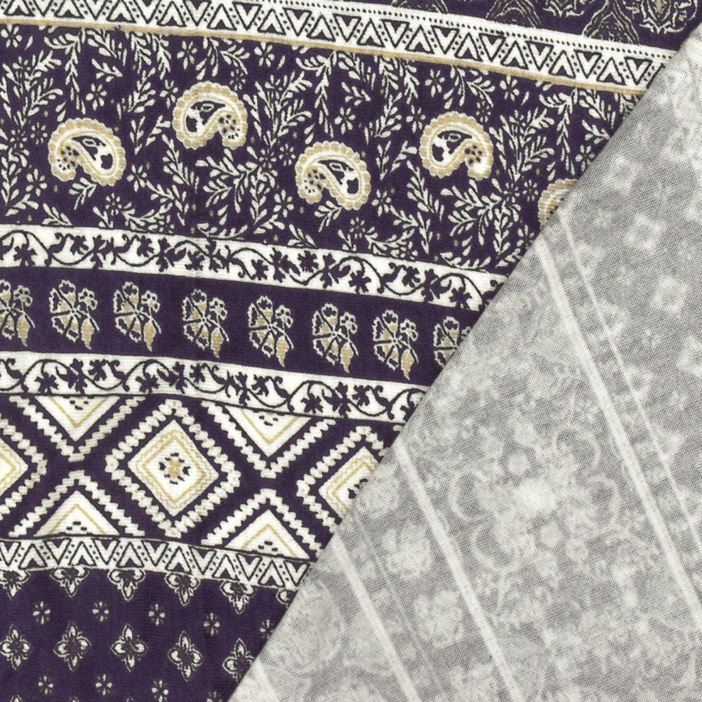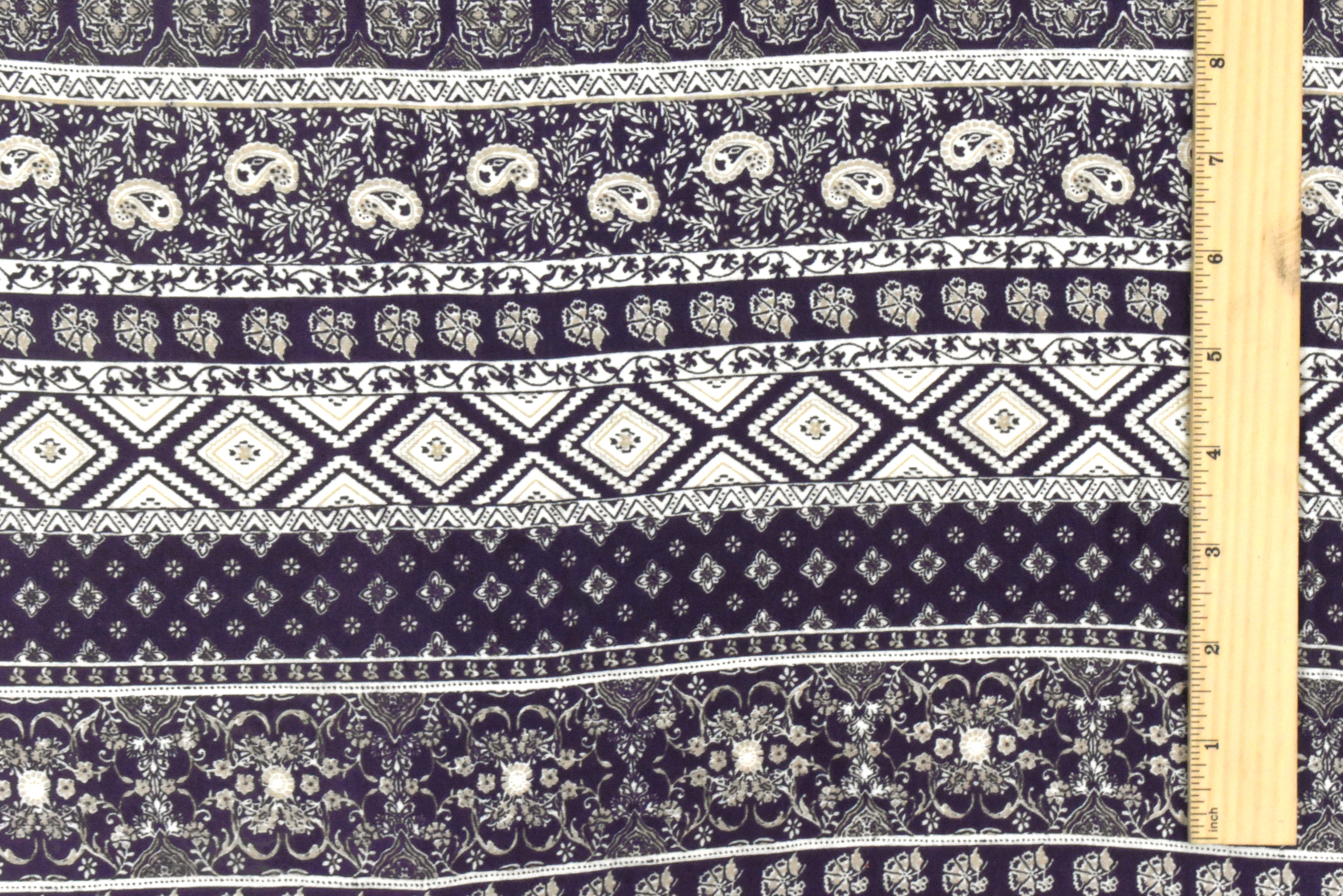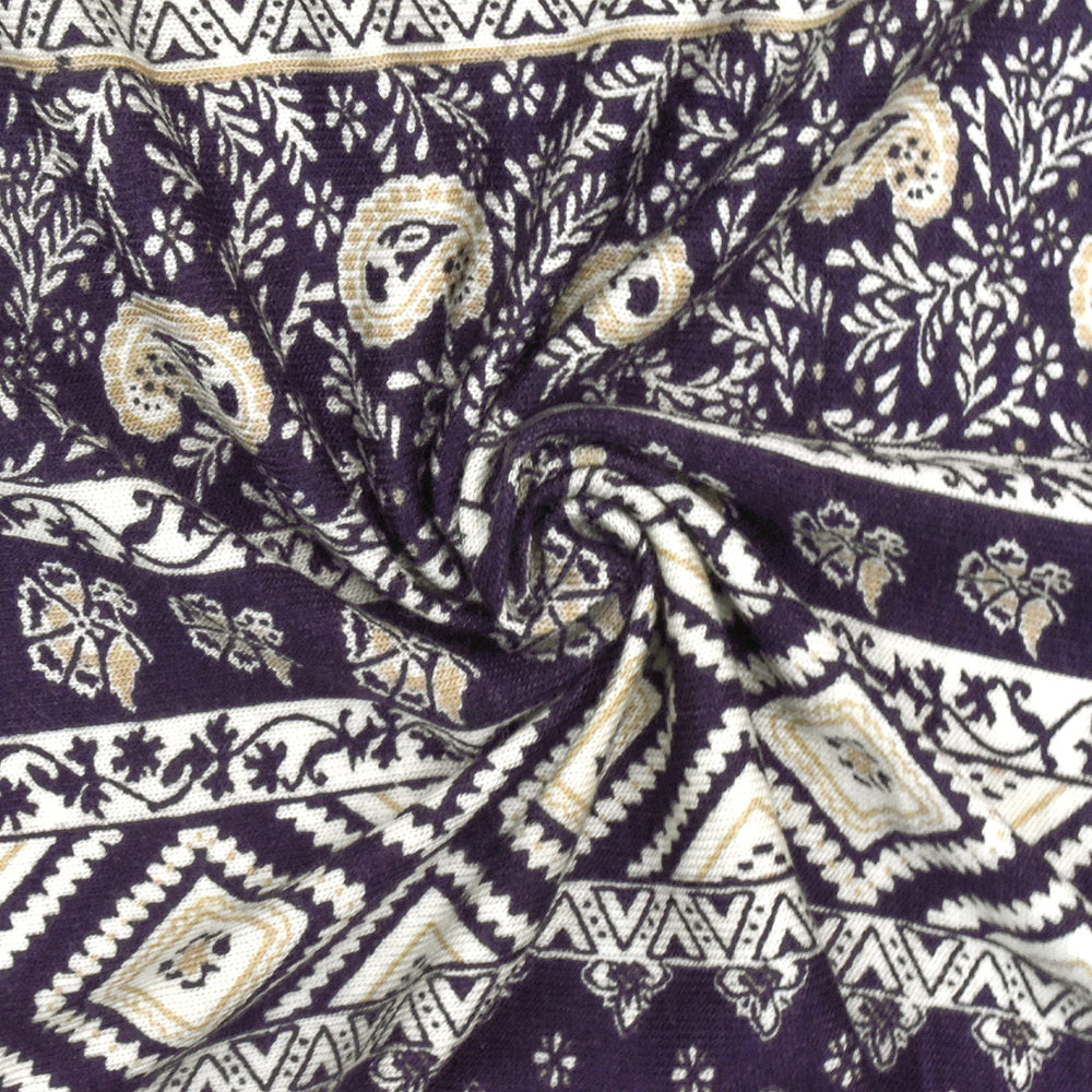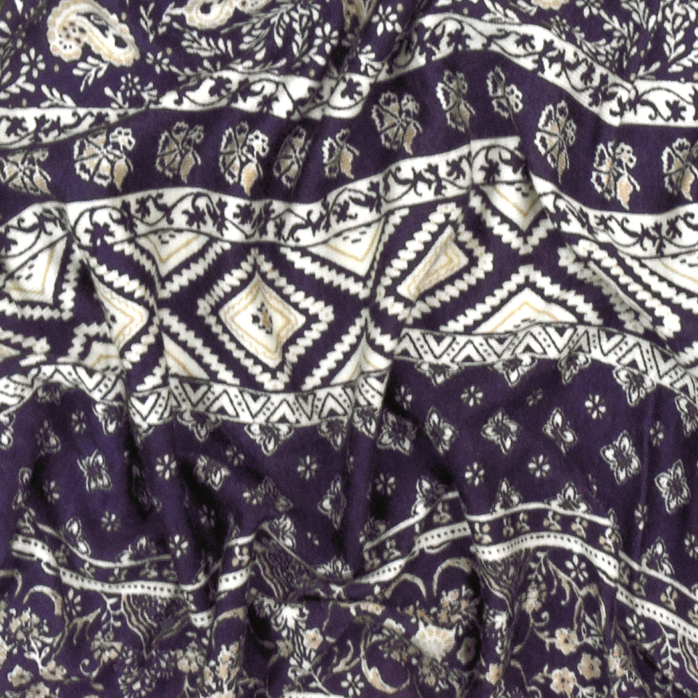 Purple-Ivory-Beige Mixed Pattern Printed Rayon Stretch Jersey Knit Fabric