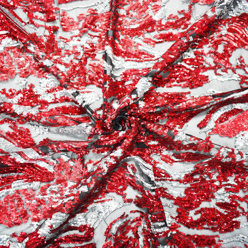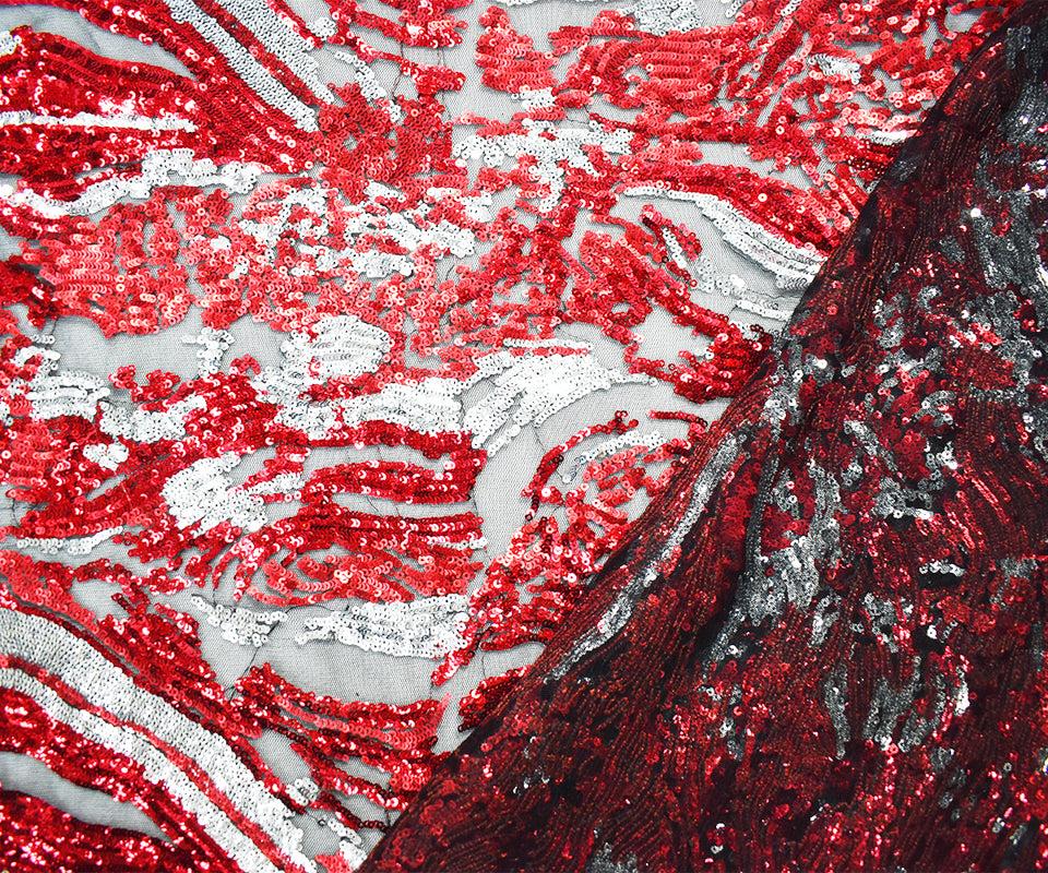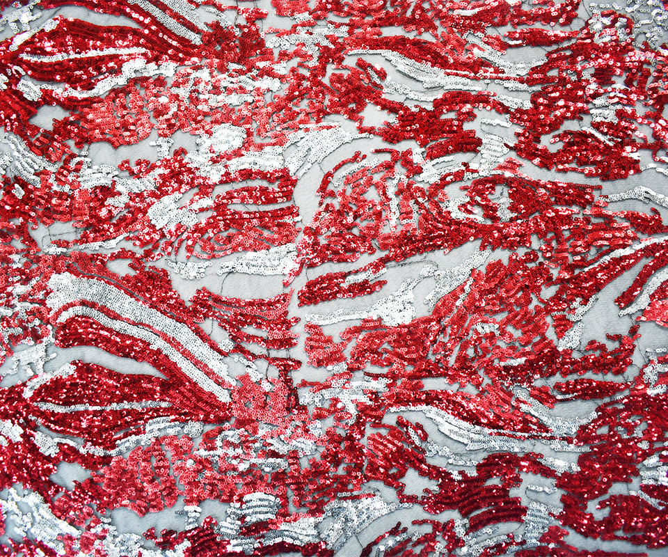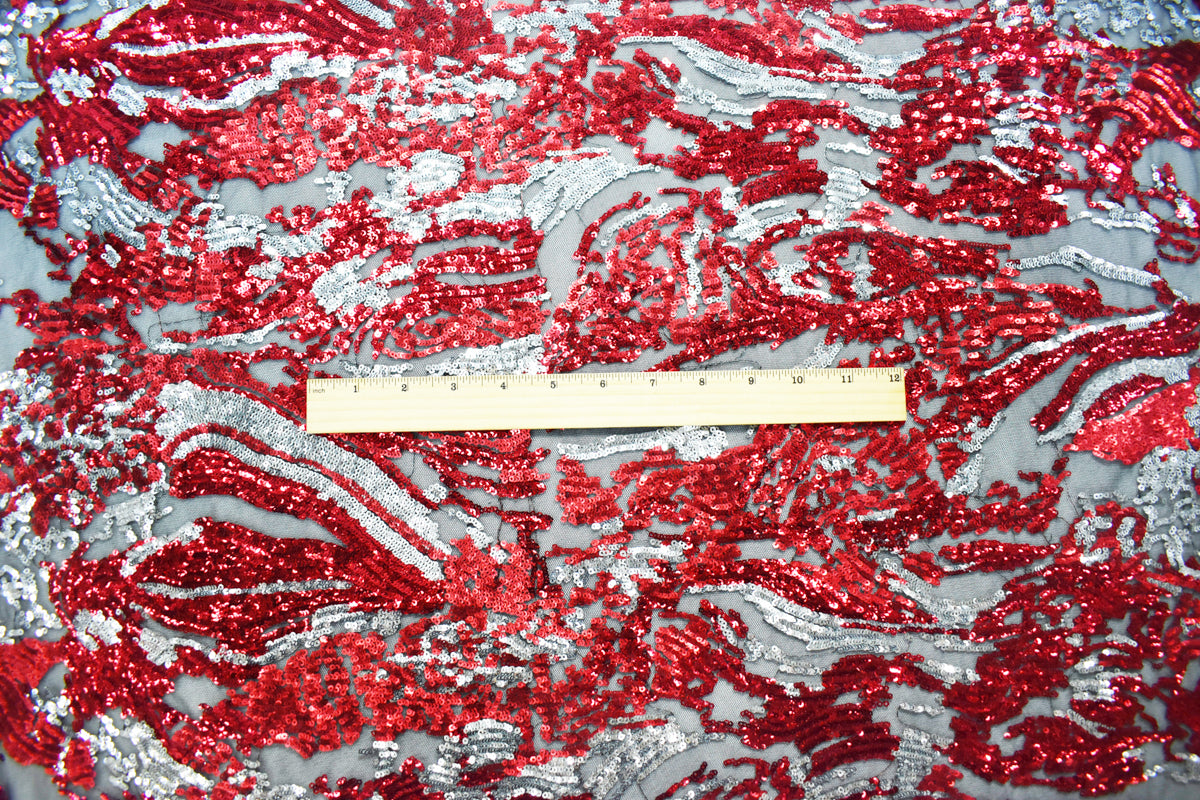 Red-Black-Silver Nylon-Poly Abstract Sequined Tulle Fabric