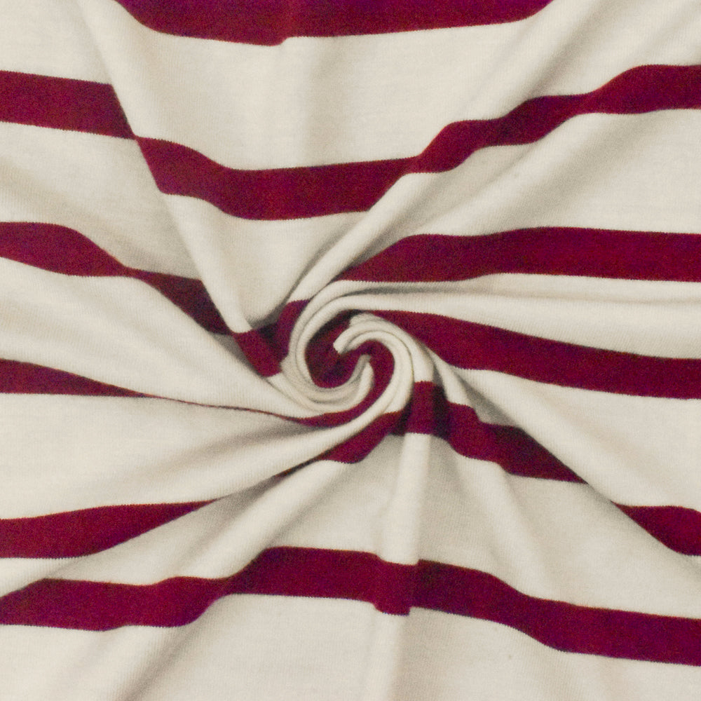 Red-Ivory Stripe Stretch Spandex Rayon Modal Jersey Knit Fabric