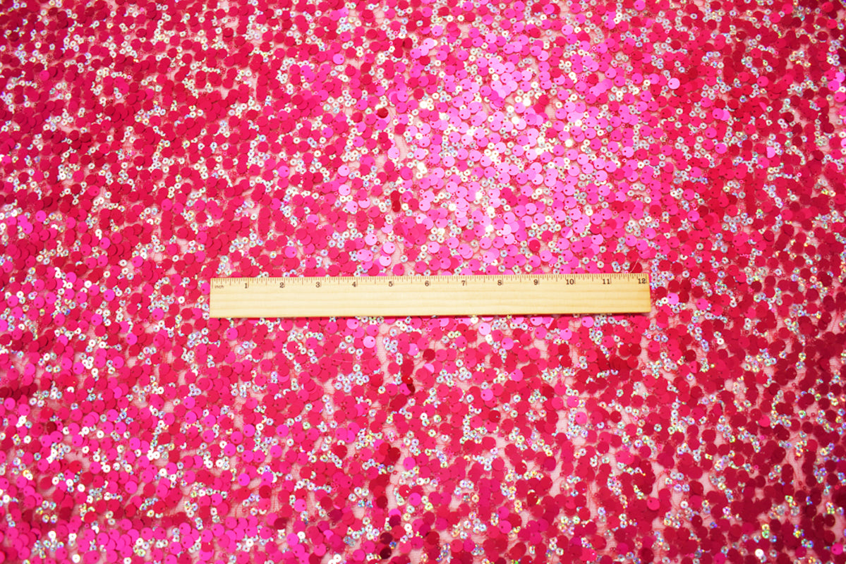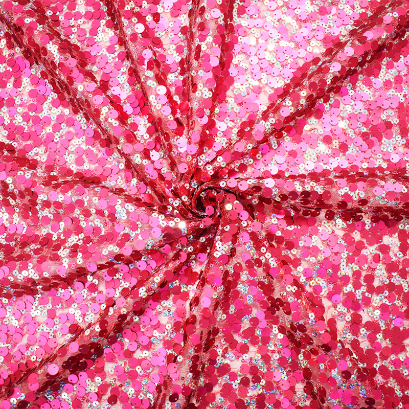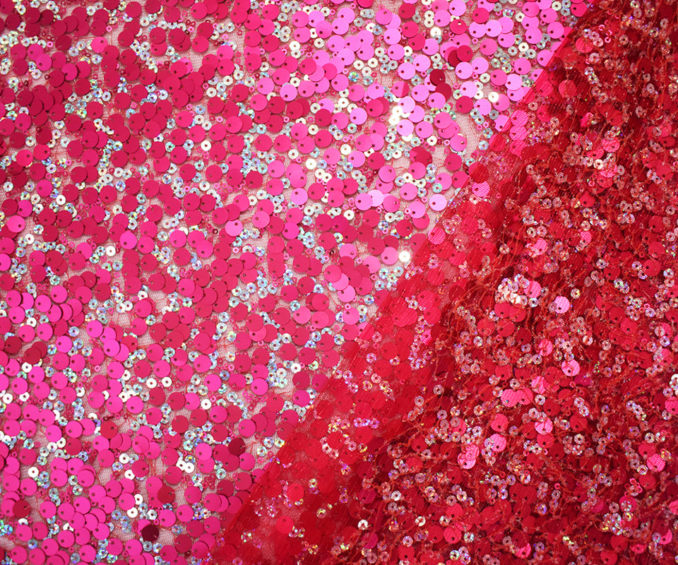 Red-Silver-Pink Poly Sequined Tulle Mesh Fabric