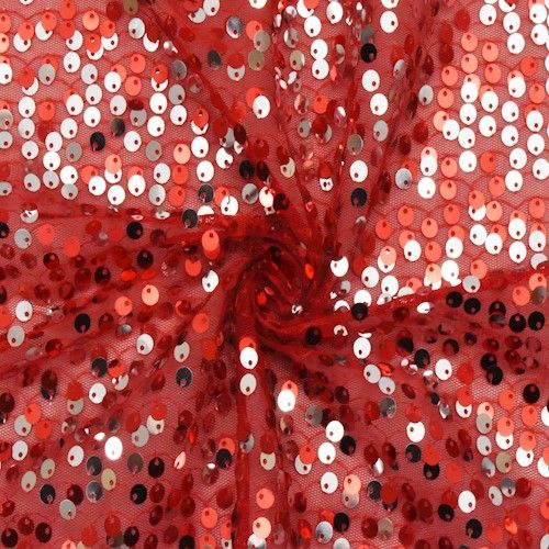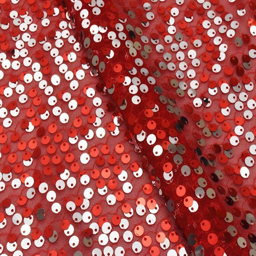 Red/Silver Semi-Sheer Sequined Mesh Tulle Fabric