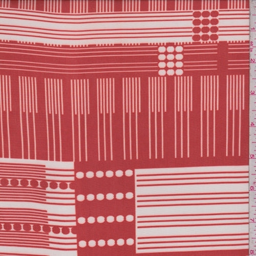 Red/White Linear Dot Block Power Mesh Fabric