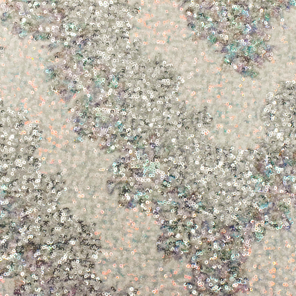 -Stylized organic-like chevron sequins on a 100% polyester mesh knit fabric