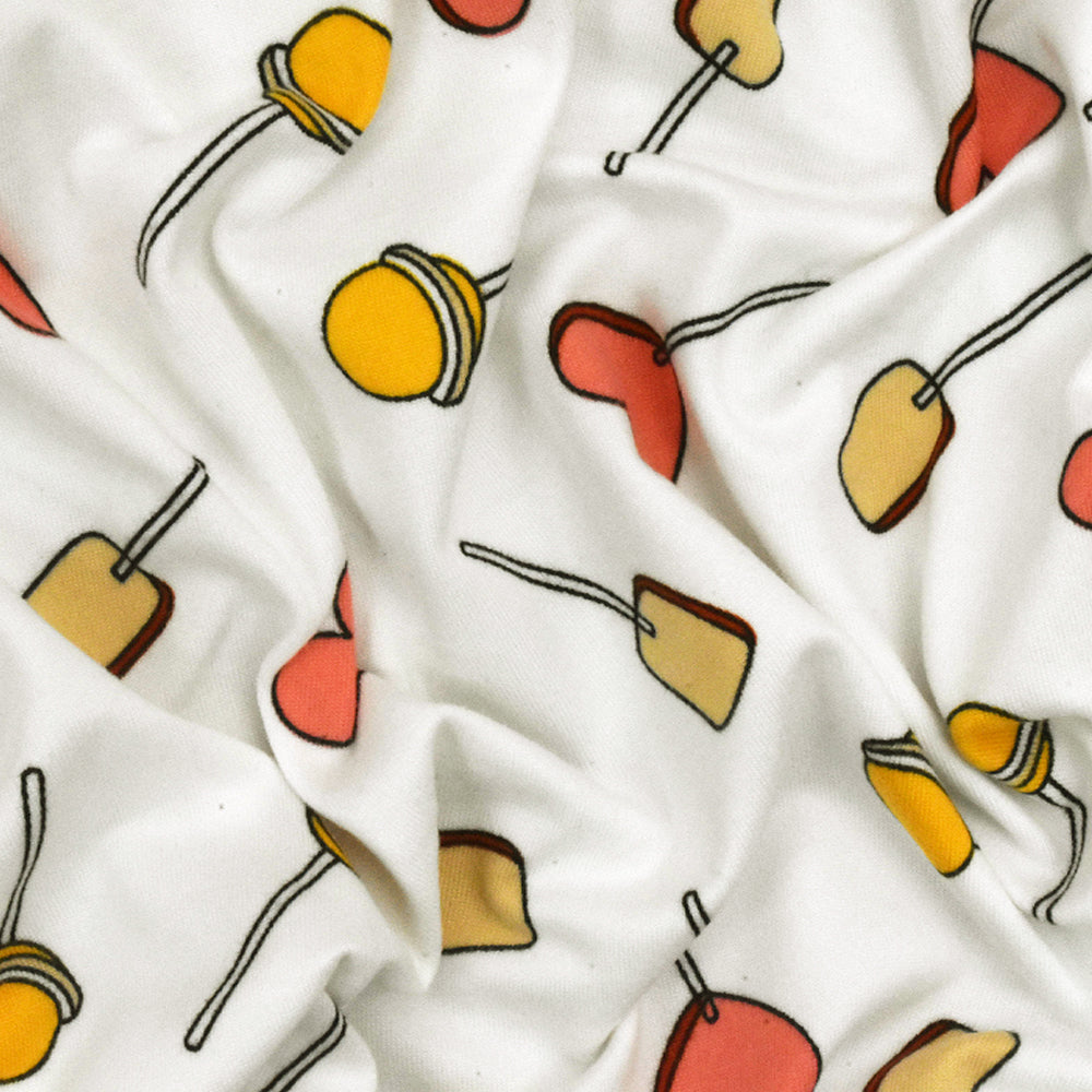 Snow White-Pink-Multi Lollipop Print Double Brushed Stretch Poly ITY Fabric