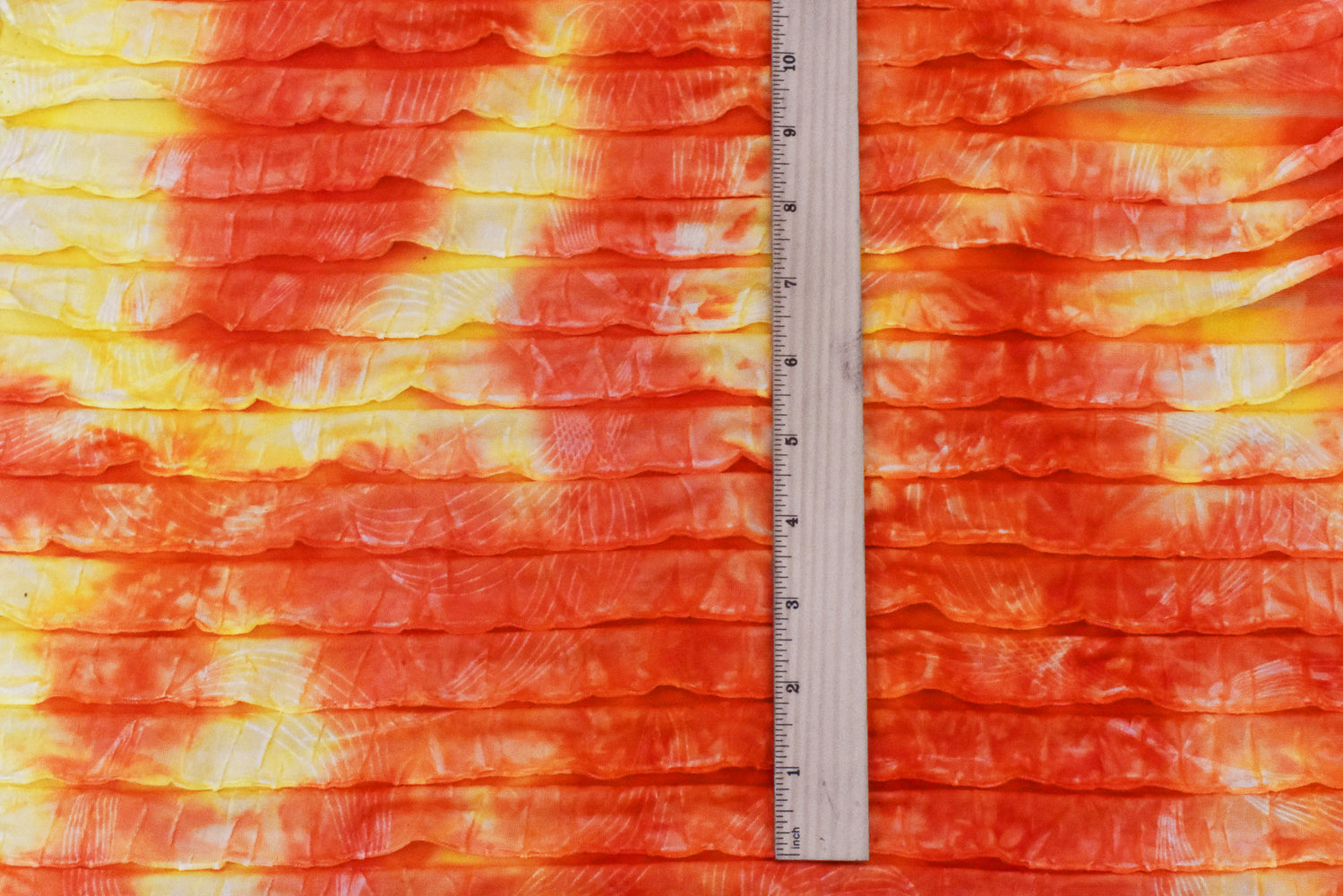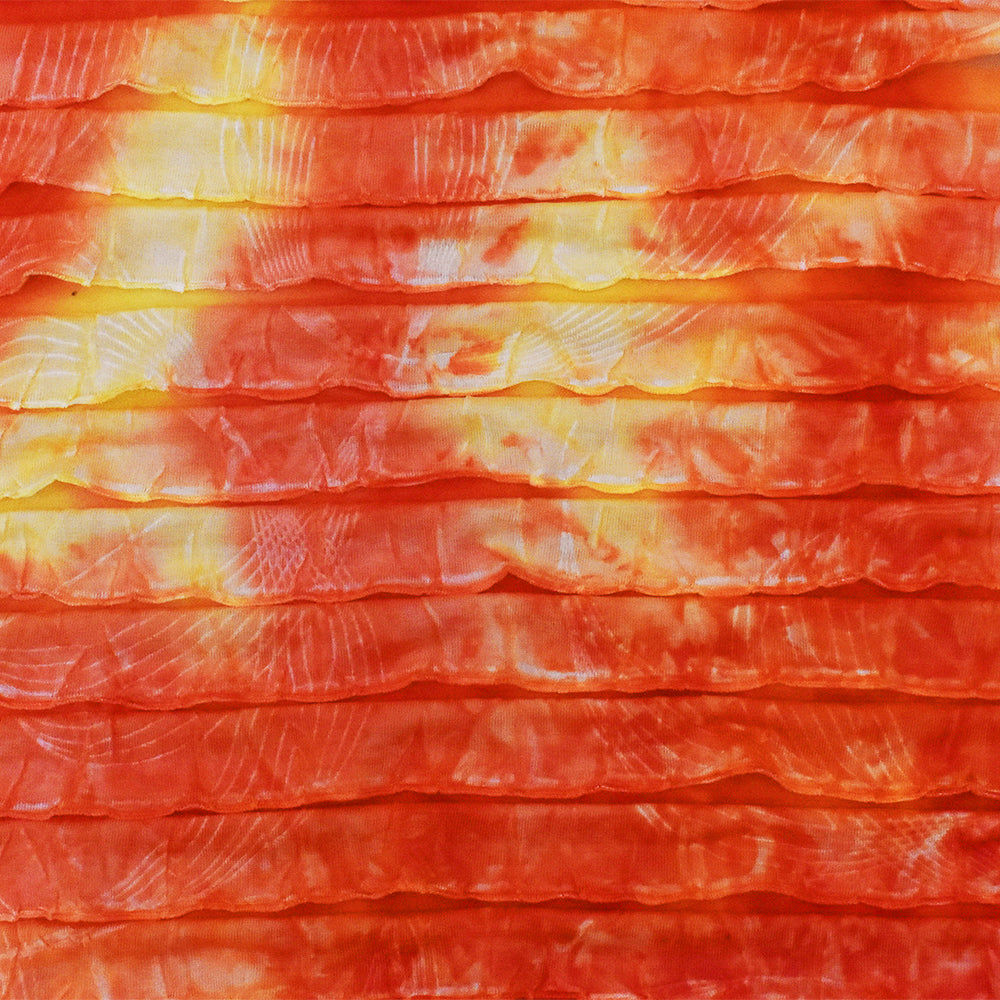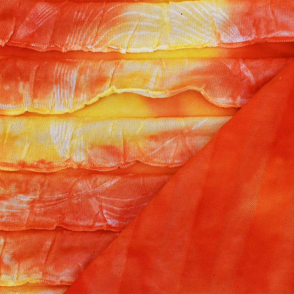 Sun Orange-Yellow-Multi Tie Dye Stretch Poly Ruffle Knit Fabric