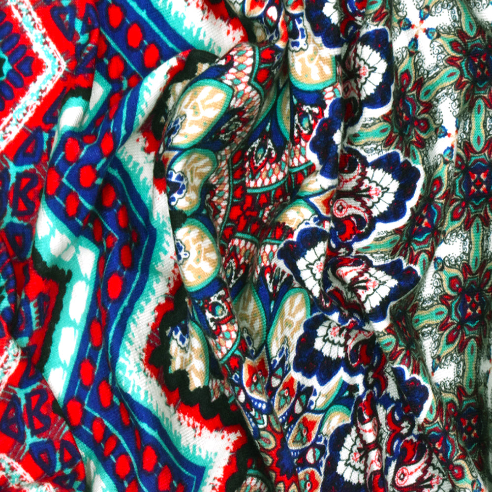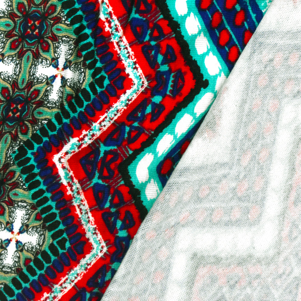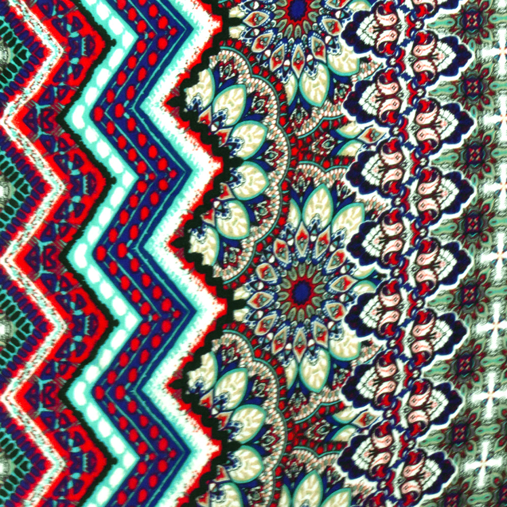 Teal-Multi Chevron Moroccan Print Stretch Rayon Stretch Jersey Knit Fabric