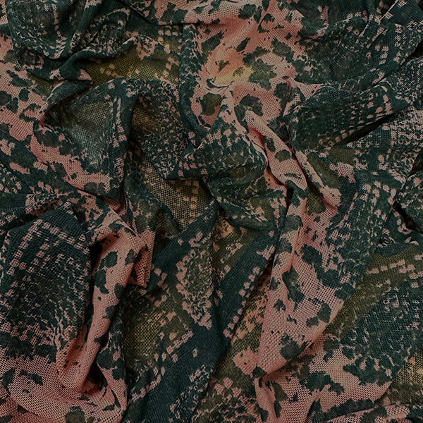 Terra Cotta and Black Snakeskin Print Stretrch Mesh Fabric