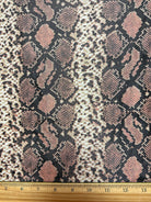 -Terra Cotta, Black, White, Gold, & Brown Multi Snakeskin Print Stretch Mesh Fabric