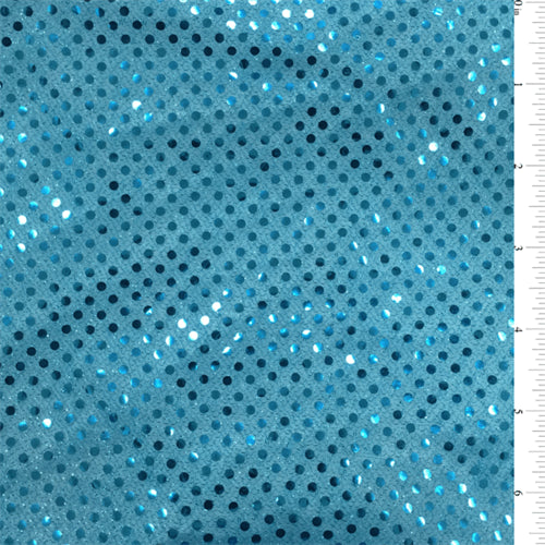Metallic TurquoiseKnit FabricWith MetallicTurquoise SequinsSuitable for Blouses,Dresses, & Dancewear80% Nylon20% Metallic43"-44" WideDry Clean