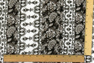 White-Taupe-Black Striped Floral Printed Rayon Stretch Jersey Knit Fabric