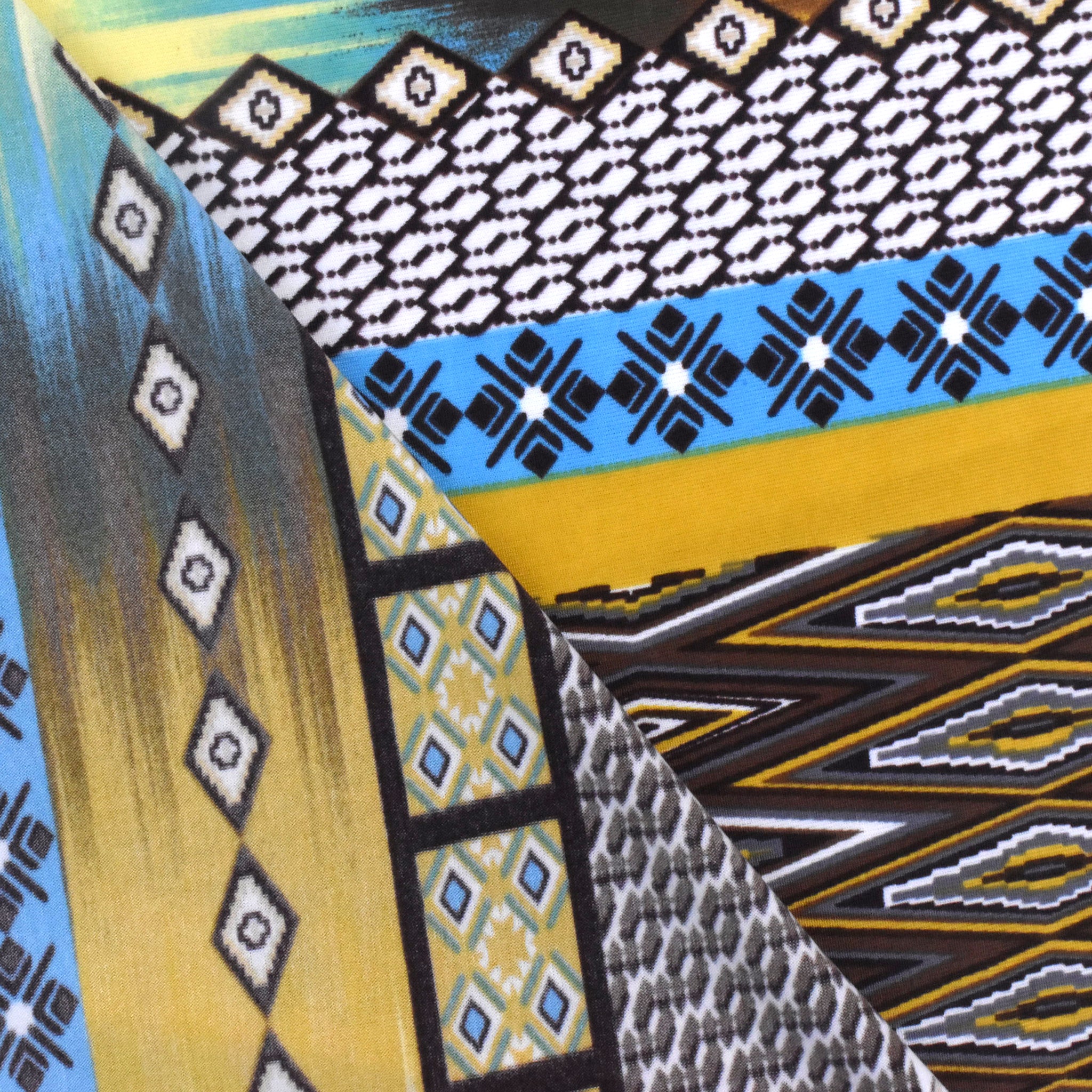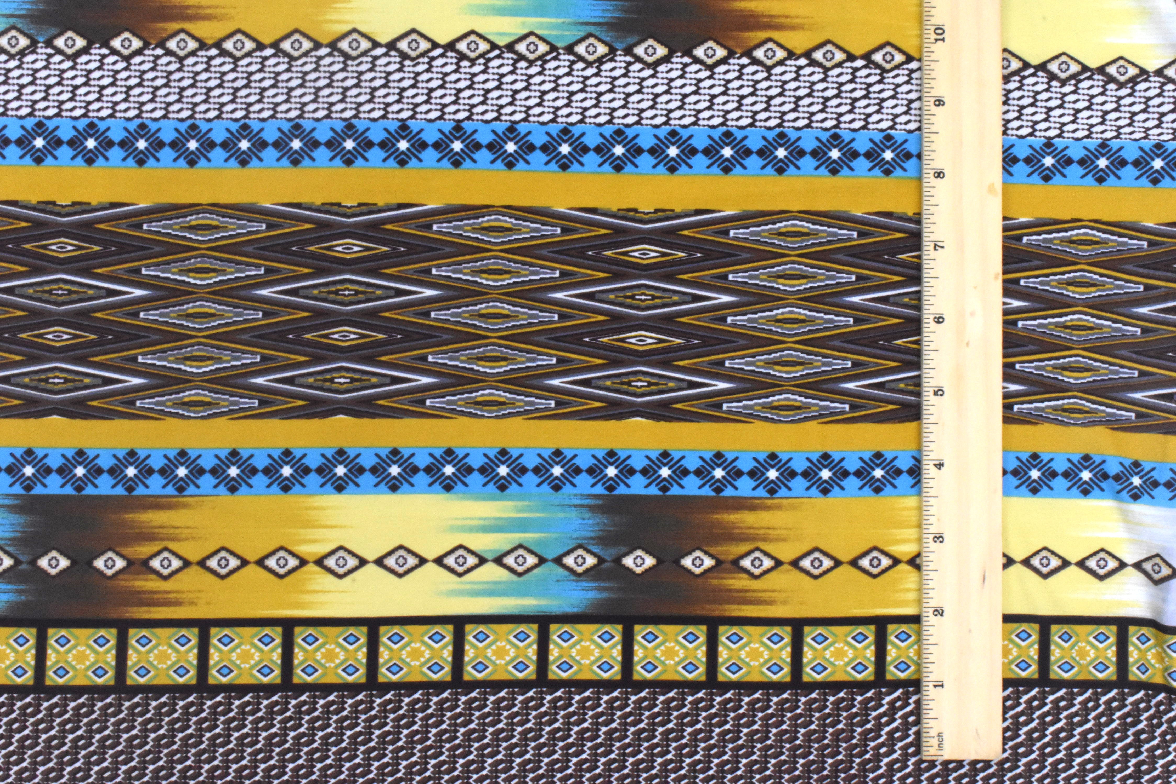 Yellow-Brown-Multi Stripe Aztec Printed Stretch Activewear Knit Fabric