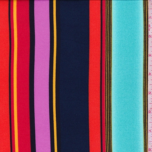 Aquamarine/Dark Navy Multi Stripe Double Brushed Jersey Knit Fabric