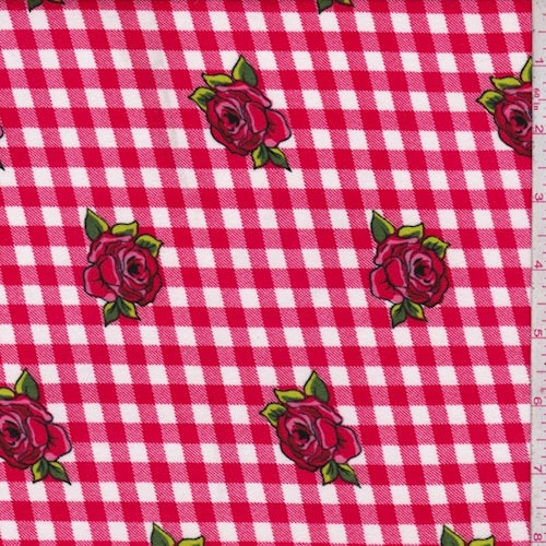 Berry/White Floral Check Double Brushed Jersey Knit Fabric