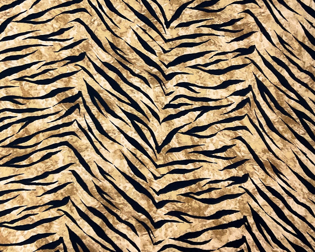 -Black-Beige Poly Spandex Stretch Tiger Print Double Brush Jersey Knit Fabric