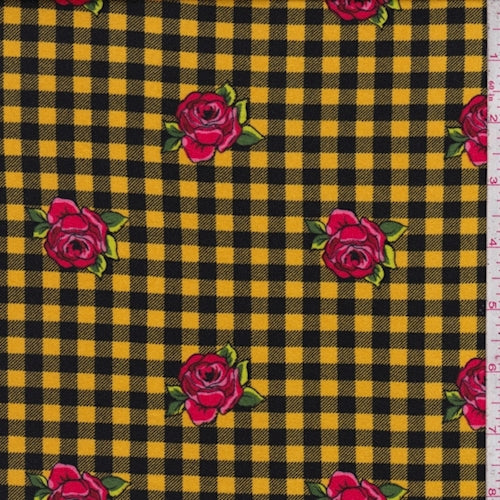 Black/Gold Check Floral Double Brushed Jersey Knit Fabric