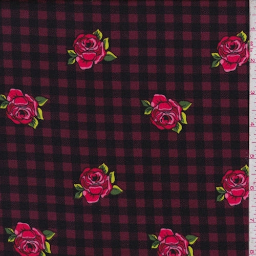 Black/Mulberry/Red Check Floral Double Brushed Jersey Knit Fabric