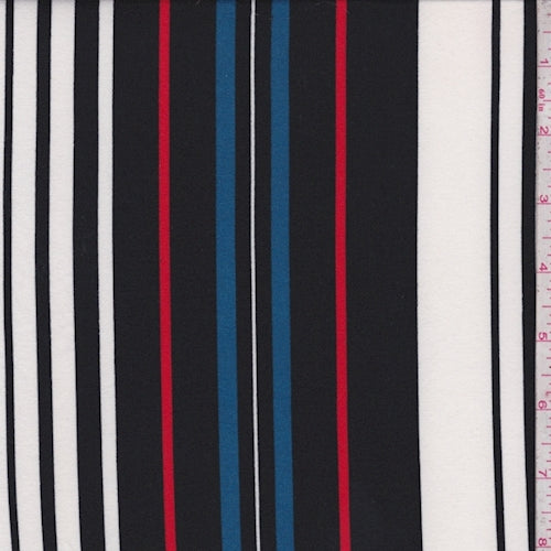 Black/White/Blue Stripe Double Brushed Jersey Knit Fabric