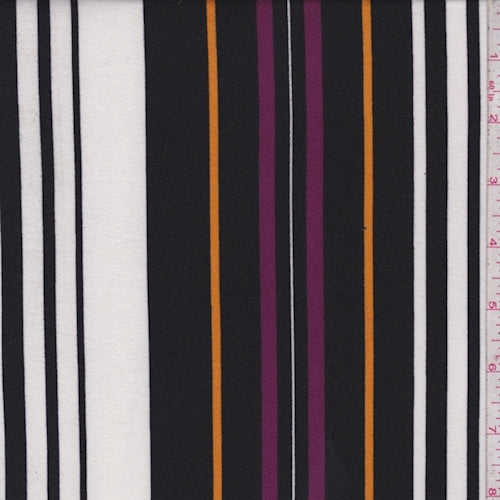 Black/White/Bright Purple Stripe Double Brushed Jersey Knit Fabric