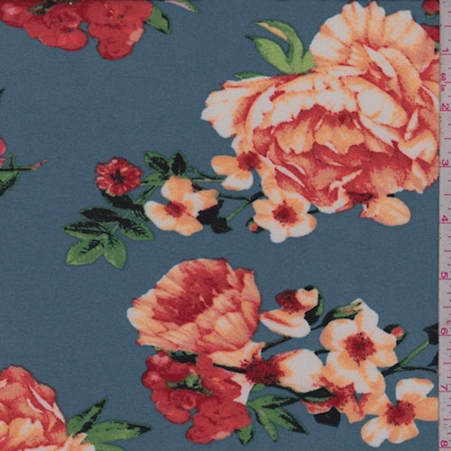 Blue/Coral Dogwood Double Brushed Jersey Knit Fabric