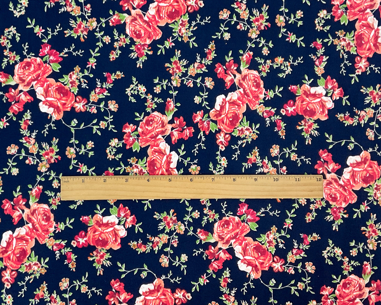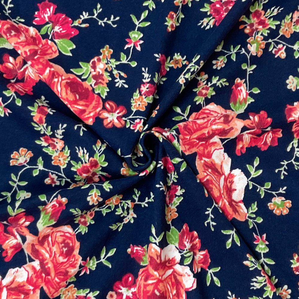 -Blue-Multi Poly Spandex Stretch Floral Print Double Brush Jersey Knit Fabric