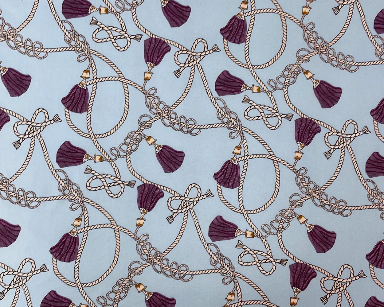 -Blue-Multi Poly Spandex Stretch Rope and Tassel Print Double Brush Jersey Knit Fabric