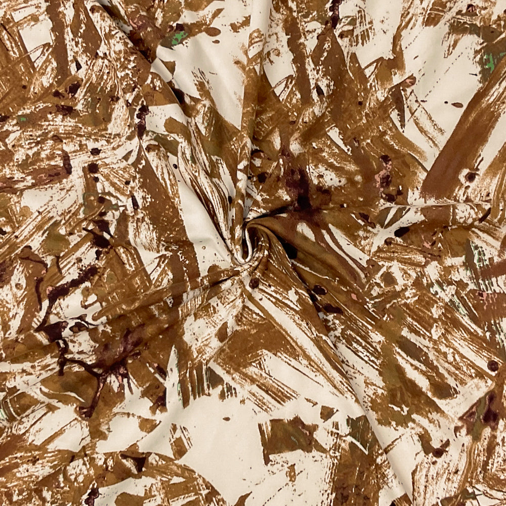 -Brown-Multi Poly Spandex Stretch Abstract Print Double Brush Jersey Knit Fabric