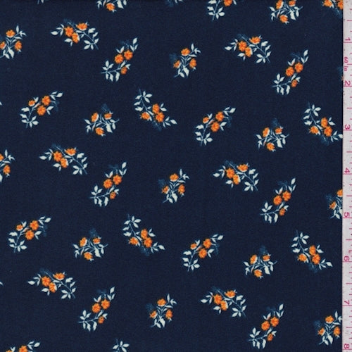 Dark Navy Floral Cluster Double Brushed Jersey Knit Fabric
