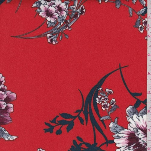 Dark Orange/Navy Peony Double Brushed Jersey Knit Fabric
