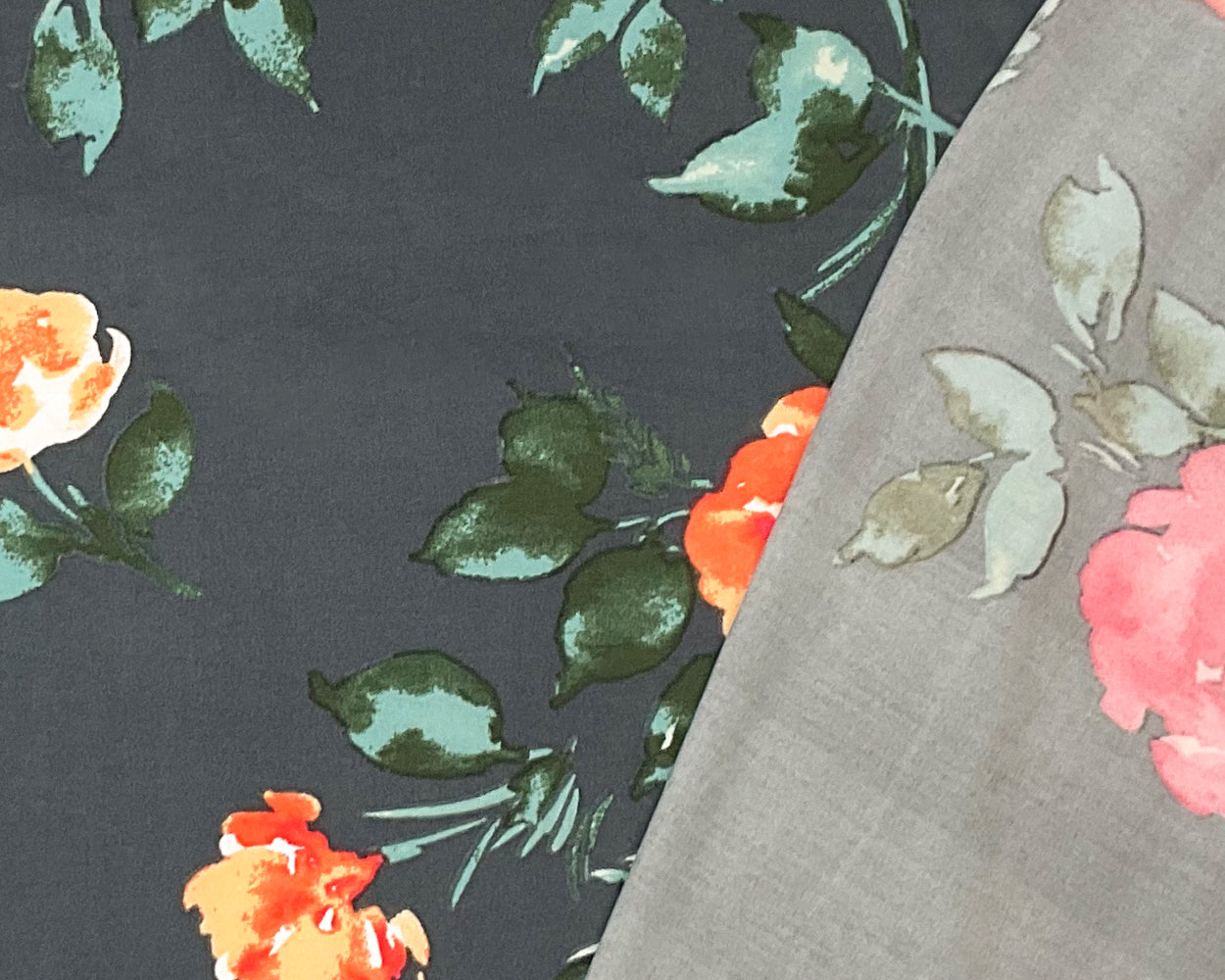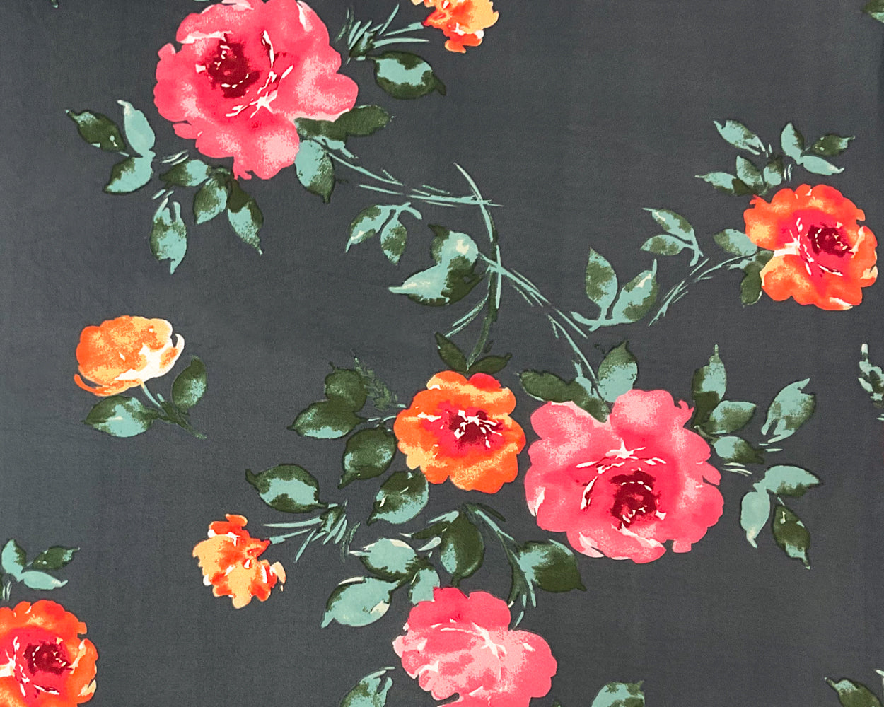 Deep Gray-Multi Poly Stretch Spandex Floral Printed Jersey Knit Fabric