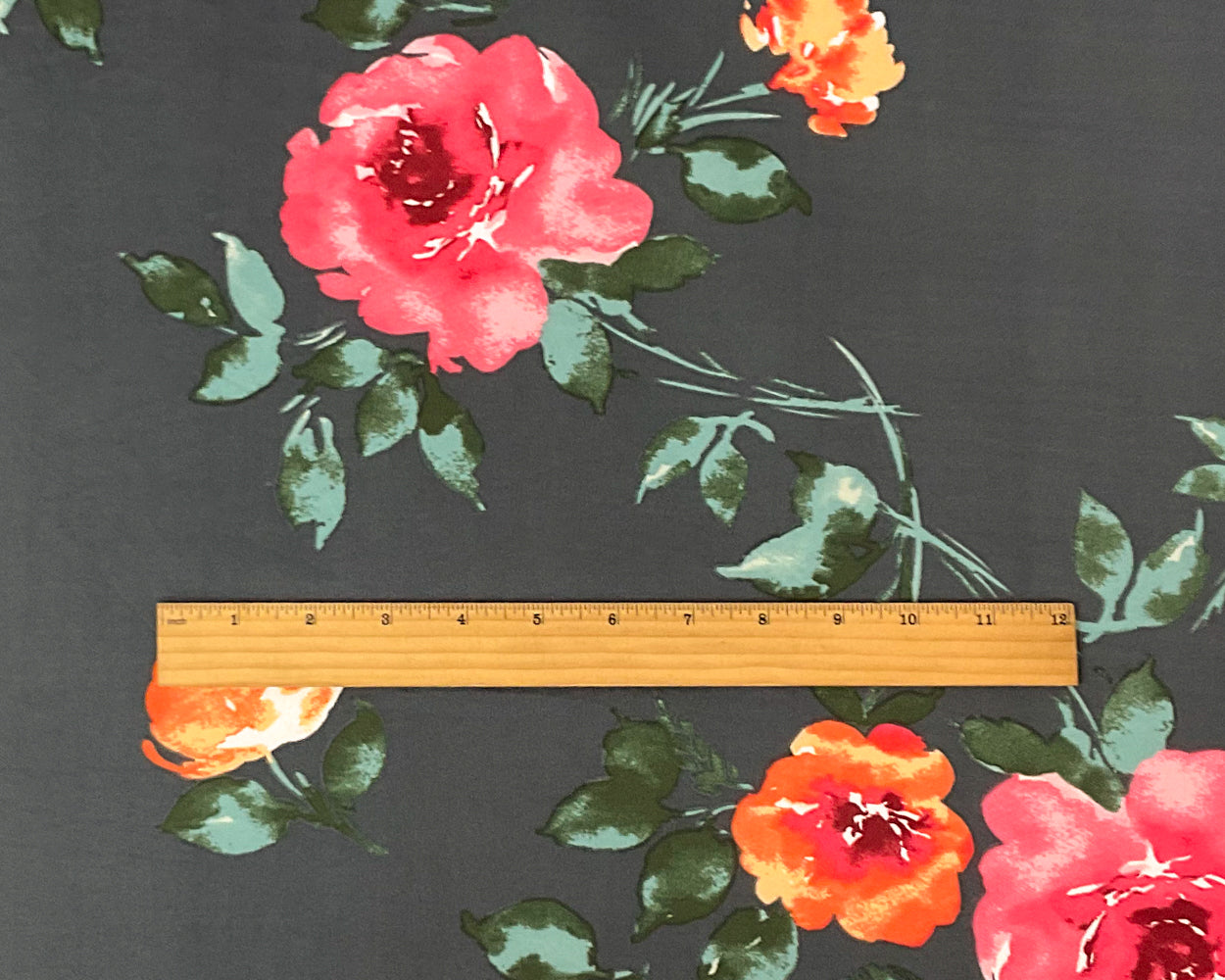 -Deep Gray-Multi Poly Spandex Stretch Floral Printed Jersey Knit Fabric