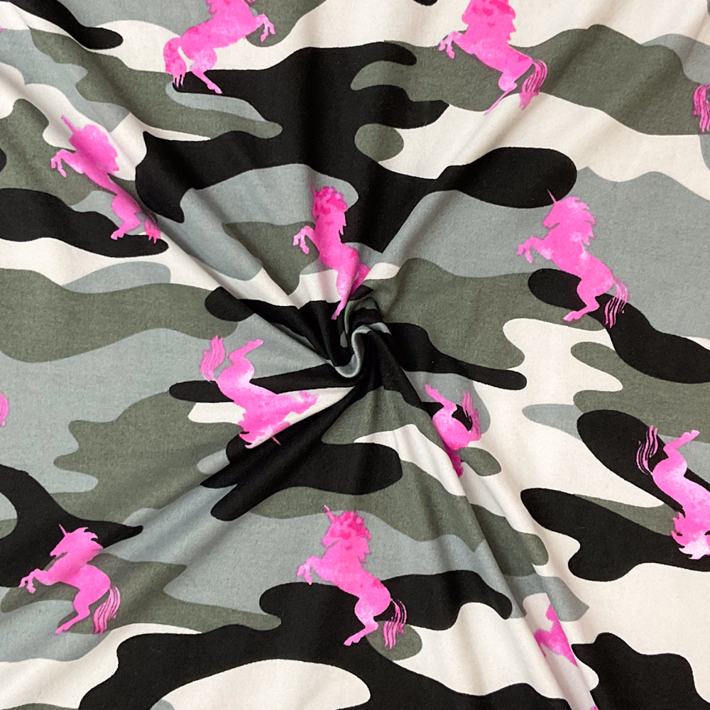 -Gray-Multi Poly Spandex Stretch Camo Unicorn Print Double Brush Jersey Knit Fabric