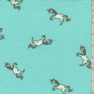 Icy Blue Leaping Unicorn Brushed French Terry Knit Fabric