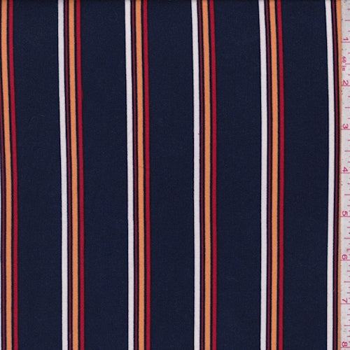 Ink Blue Multi Stripe Double Brushed Jersey Knit Fabric