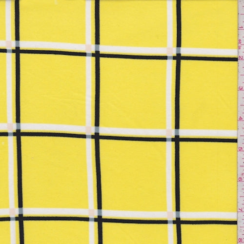 Lemon/Black/White Check Double Brushed Jersey Knit Fabric
