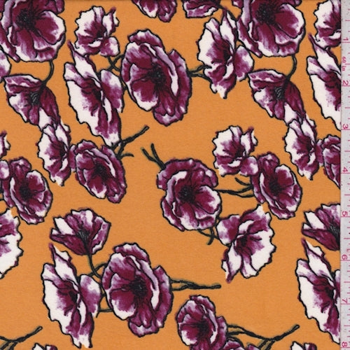 Marigold/Mulberry Floral Double Brushed Jersey Knit Fabric