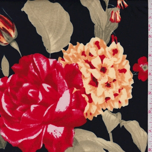 Midnight/Red/Yellow Peony Super Brushed Jersey Knit Fabric