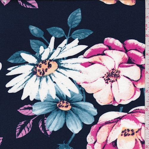 Navy/Apricot Floral Pop Double Brushed Jersey Knit Fabric