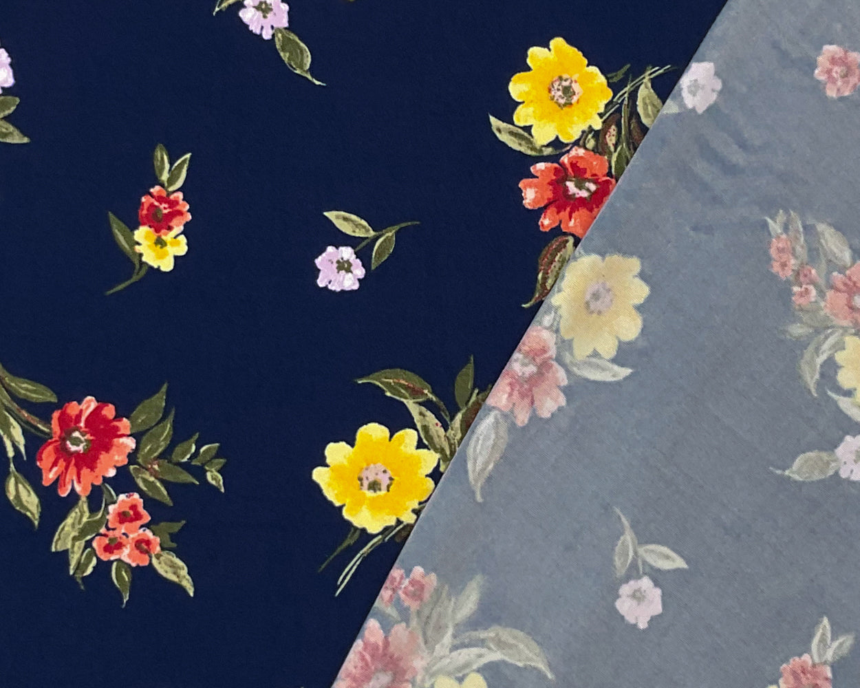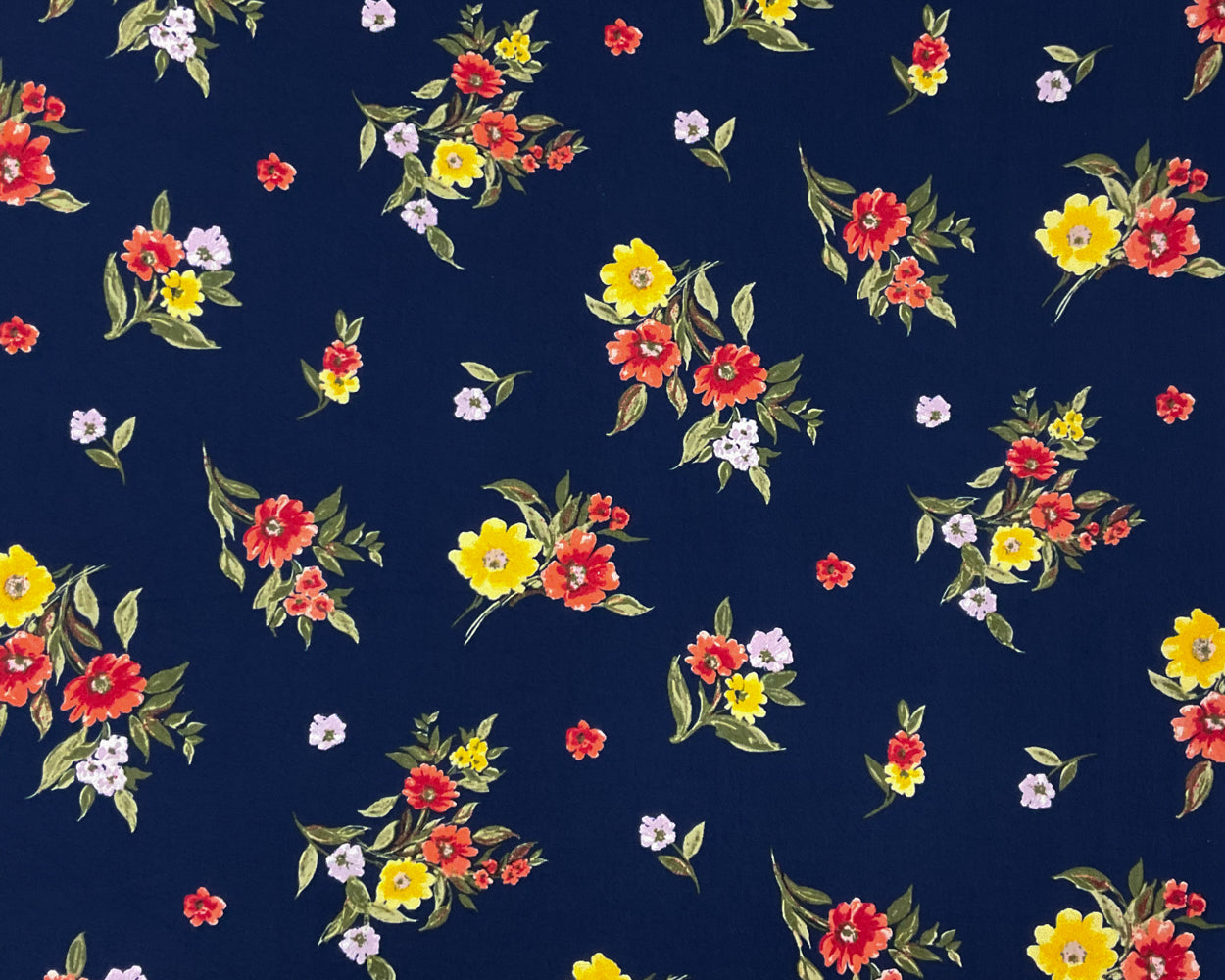 Navy Blue-Multi Poly Stretch Spandex Floral Print DB Jersey Knit Fabric