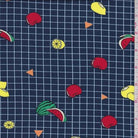 Navy Grid/Fruit Double Brushed Jersey Knit Fabric