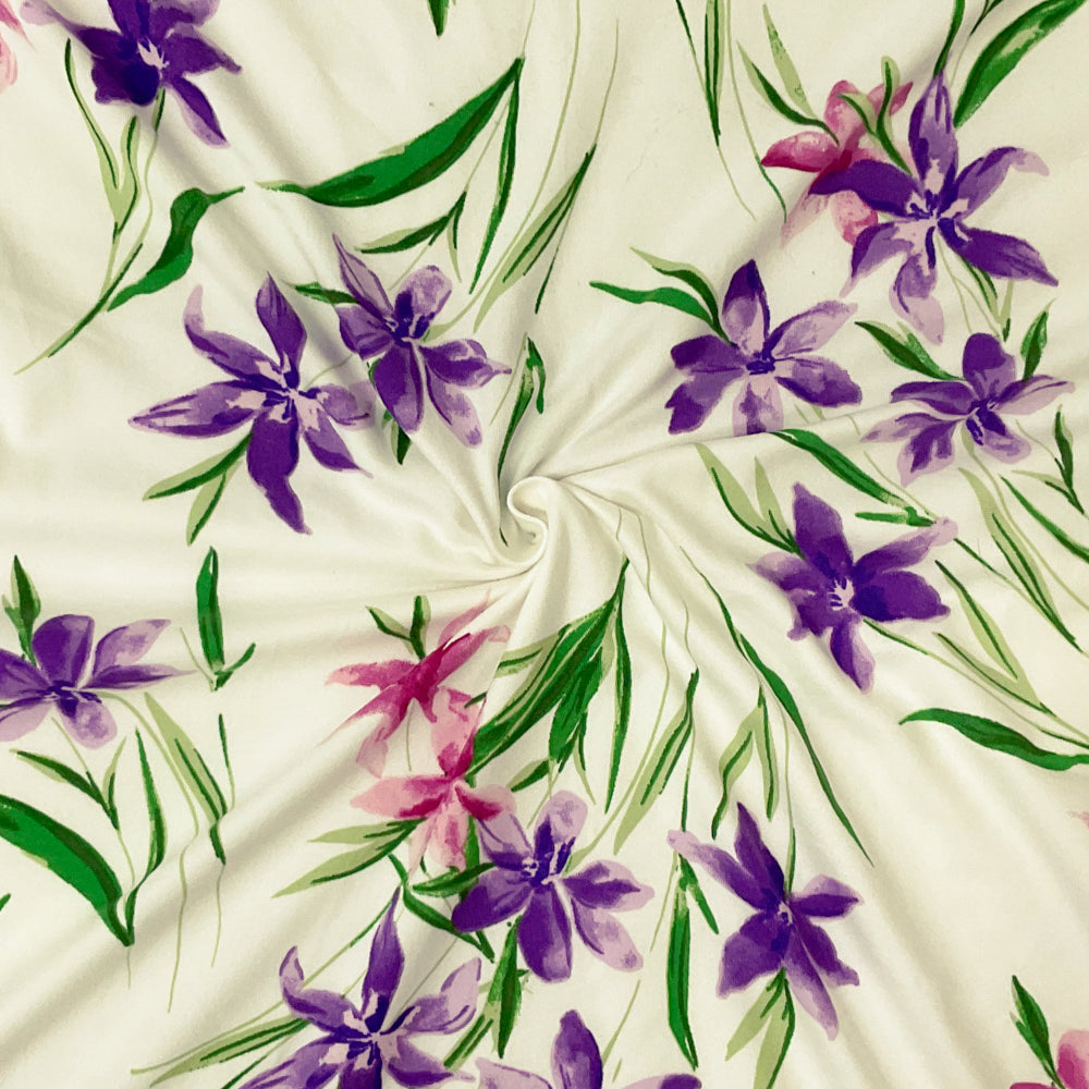 -Off-White-Multi Poly Spandex Stretch Floral Print Double Brush Jersey Knit Fabric