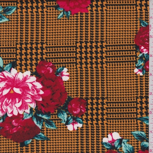 Orange/Black Glen Plaid Floral Double Brushed Jersey Knit Fabric
