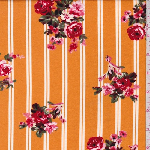 Orange Gold Double Stripe Floral Double Brushed Jersey Knit Fabric