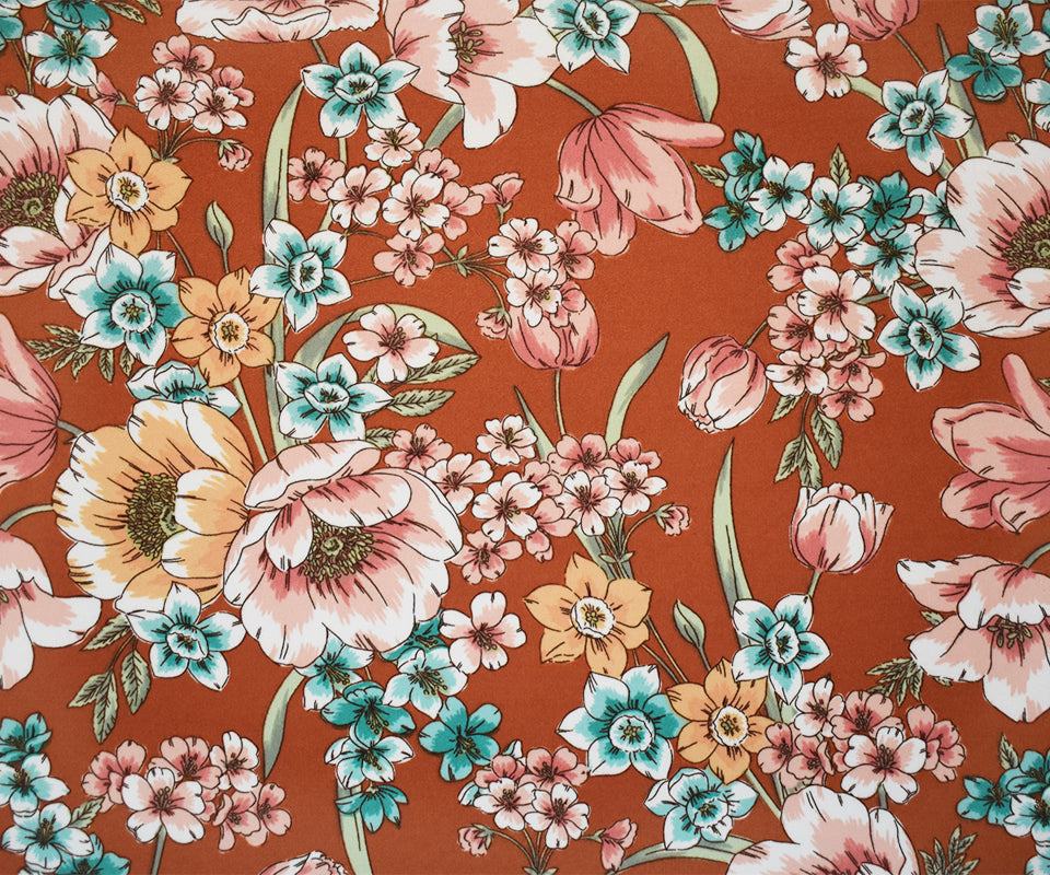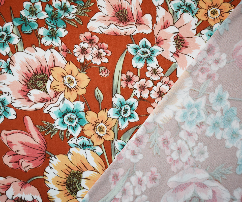 -Orange-Multi Poly Spandex Stretch Floral Print Double Brush Jersey Knit Fabric