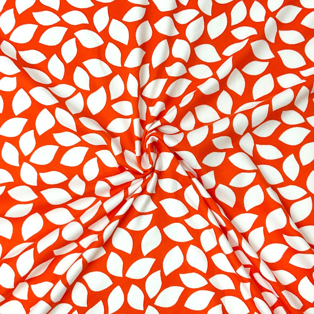 Orange-White Poly Stretch Spandex Petal Print DB Jersey Knit Fabric