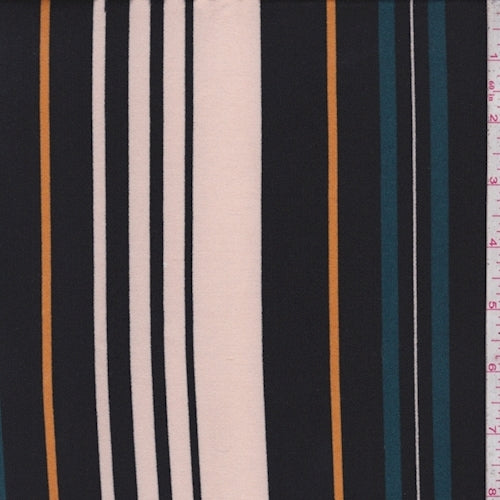 Pale Pink/Black/Teal Stripe Double Brushed Jersey Knit Fabric