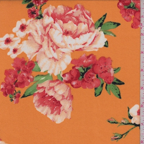Papaya/Coral Floral Double Brushed Jersey Knit