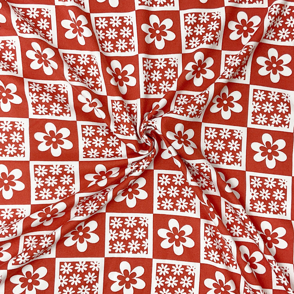 Red-Multi Poly Stretch Spandex Floral Print DB Jersey Knit Fabric