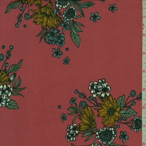 Salmon/Gold Multi Floral Cluster Brushed Jersey Knit Fabric
